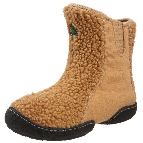 Snuggle up to the cozy comfort of this relaxed mini bootie! A removable polyurethane insole is made with plush softness, yet is still tough on shock. Lightweight, flexible construction relieves the stress of walking, while the slip-resistant thermoplastic rubber outsole provides durable traction. This style keeps feet toasty warm with a polyester sherpa and felt wool upper. Low profile styling offers double elastic stretch inserts for easy on / off.